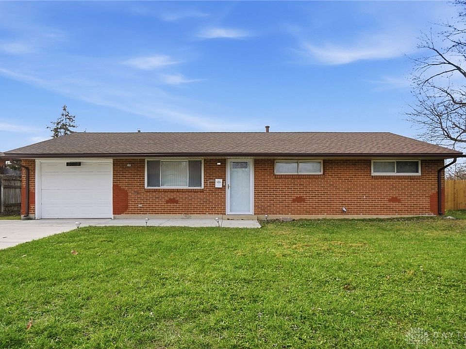 Impeccable 3 bedroom, 1 bath brick ranch in move-in condition! This well-maintained home offers an updated kitchen with all appliances—including stackable washer and dryer—remodeled bathroom, newer LVP flooring and carpet, vinyl insulated windows, new exterior door, newer roof, furnace and a brand-new A/C unit. Enjoy the convenience of a 1-car attached garage, oversized concrete driveway, covered patio, and a fully fenced yard perfect for outdoor living. The freshly painted primary bedroom features two closets for ample storage. Ideally located near schools, parks, shopping, restaurants, and with easy access to I-70.