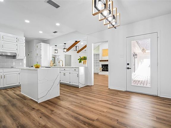 Don't miss this fabulous custom renovation by Better Built Homes! This single story home is tucked away on a quiet street in popular Sugar Creek. Every inch has been restored and features high-end finishes that today's buyer will appreciate. Updates include new roof, LVP and tile flooring, quartz countertops, recessed lighting, champagne gold and matte black fixtures and hardware, new lighting, new plumbing, and more. The open concept living area is a true show stopper with vaulted ceilings, wood beams, sky lights, a fireplace with custom bookcases, and a wet bar with wine refrigerator and undermount sink. The kitchen features gorgeous quartz countertops with a waterfall edge on the island, stainless appliances including a built-in microwave/convection oven, an abundance of cabinets, 2 pantries, an incredible view to the family room, and a breakfast area. A private bedroom with full bath is located just off the kitchen. On the other side of the house, you'll find 2 more bedrooms, a storage closet, a full bath, and the oversized master suite. The master bath has two dressing areas, each with a sink and walk in closet. There is a jetted soaking tub, custom shower with a glass surround, and a separate hot water heater for this space. All four bedrooms have a walk-in closet. Other features include faux wood blinds, a huge deck for entertaining, fenced yard, double garage with storage area, and laundry room with utility sink. Listing Company makes no representation as to accuracy of square footage :buyer to verify.