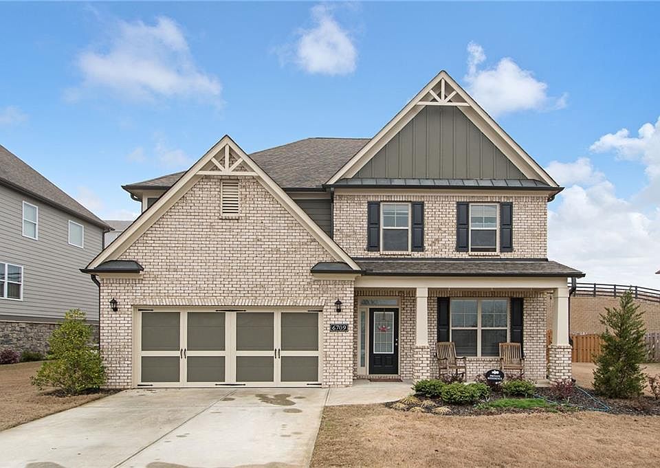 This gorgeous home has it all! Located on a quiet cul-de-sac in beautiful Sterling on the Lake, this will be your oasis! Just perfect from the rocking chair front porch, into the main level featuring hardwood floors throughout, tons of natural light, coffered ceilings, stacked stone fireplace, separate dining room, open concept chef's kitchen with all the right upgrades, butler's pantry, generous breakfast area, and guest suite. Upper level features a fabulous master suite complete with sitting room, huge walk-in closet, tray ceilings, and access to the laundry room. Enjoy the sizable loft space, perfect for a second family room or playroom. Generous size secondary bedrooms and double vanities in the hall bath. Relax on the covered patio in your fenced back yard. What an opportunity to enjoy this community with numerous amenities, including 4 pools, water slide, 10+ tennis courts, lovely clubhouse and gathering room, fitness center, walking trails, private lake with fishing and kayaking, library, and more! All of this in Flowery Branch Schools!
