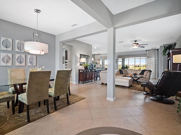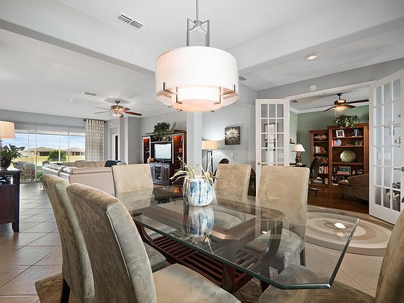 Golf Course home with an unobstructed view of the Lake saving you thousands of dollars with many upgrades. Tile on the diagonal throughout he common areas, engineered hardwood flooring in the Den and Master Bedroom and carpet in the 2 guest bedrooms. Kitchen open to the family room and kitchen nook (great for entertaining), and has been remodeled with granite counter tops and custom backsplash. Kitchen has SS appliances including new refrigerator and dishwasher, an island, pantry, 42'' cabinets with pullouts. Master bath has been beautifully remodeled with dual vanity, Quartz countertop, designer sinks, tiled shower and floor, large walk-in closet. Family room has solar shades and leads out to the 30' x 9' screened lanai with river rock flooring. One year home warranty included.