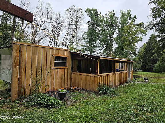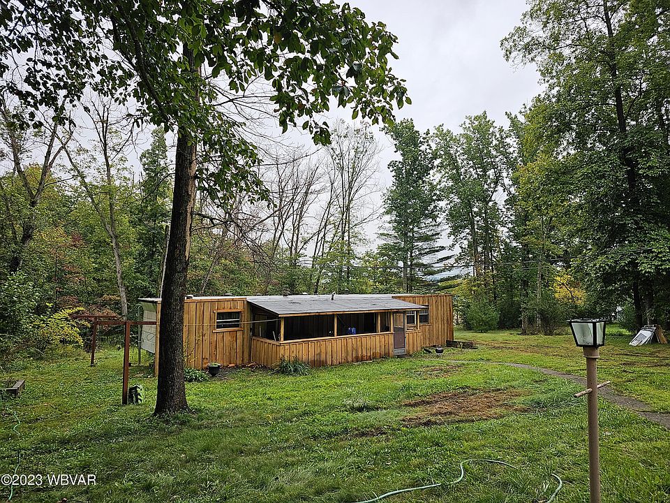1.2 acres with a 1961 mobile home. 2 bedroom, 1 bath, 2 car garage, pole building with and small screened in pavilion. Horses are a possibility. (Please confirm with Washington township) .....and if you like to hunt or hike you are near state game lands and on the mountain. Perfectly affordable cabin property. This was used as a rental in the past and could make a great little rental now. To schedule your showing, call Diane Shultz at 570-772-4470