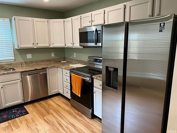 Great North Raleigh Townhome. Vinyl floors throughout downstairs. Large family room with dining area. Kitchen has granite counters and stainless appliances. One bedroom and full bath downstairs. Two other bedrooms and full baths upstairs. All bedrooms have their own bath. Washer/Dryer included. Private fenced in back patio and small yard with storage closet. Two assigned parking spaces. Convenient to shopping, dining, and highway. Sorry, No Pets! Ask about our tenant benefit package. Welcome Home! Please see the blockrealty website for the most accurate property details, photos, and application