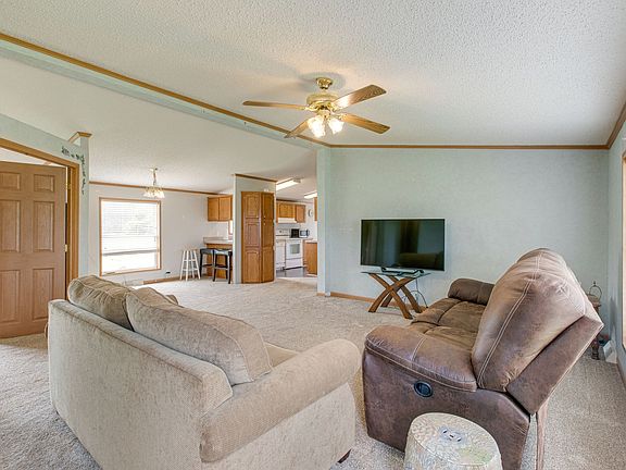 Rural living at its best! Nice mobile home on permanent foundation. New carpet and covered porch on over 8 acres with a shop perfect for storing farm equipment, etc. Selling as is. Buyers agent to verify all pertinent info.