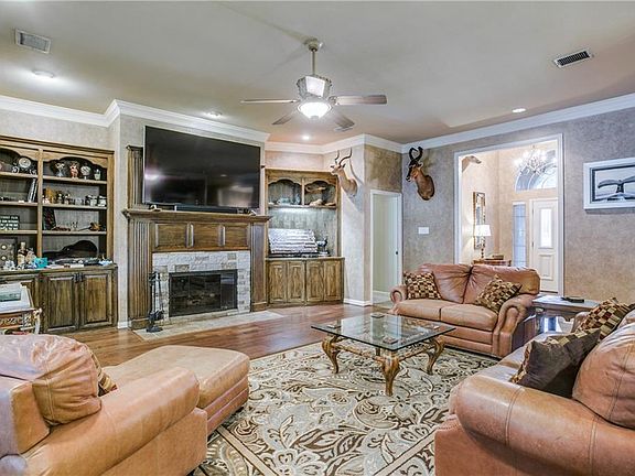 ATTENTION TO DETAIL! This stunning estate was built sparing no expense. The 4800+sf sprawling main residence boasts of two separate living areas, 4 large bedrooms and 4.5 baths + 2 dining areas with a great open concept floor plan. Gorgeous kitchen with built-in refrigerator, double-ovens, cooktop, wine refrigerator and walk-in pantry. Utility room has an oven for extra holiday baking. The beautiful resort style backyard is an oasis and the perfect entertaining spot complete with pool, water slide and outdoor living area. 2.9 acres with lush landscaping, regulation sand volleyball court, RV storage + shop, Living quarters + wine room in the second shop. Secluded second outdoor patio area with fire pit.