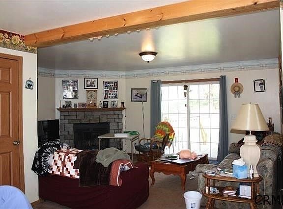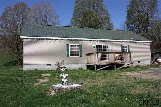 Open floor plan of Kitchen, dining and living room area. Wood burning fireplace in the living room. Sliding glass door to deck. Three bedrooms with an extra room that could be another bedroom or make a great office. Walk up attic, or finish it for extra living space. Sliding glass door to deck. Large 2.5 Acre lot.