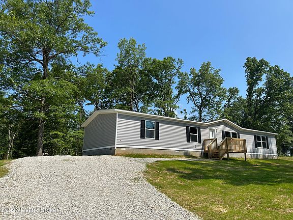 Brand new 4 bed 2 bath home on 1.2 acre corner lot in Brandenburg! Home boasts over 1900 sq ft of living space, 2 living rooms, kitchen island, walk in closets and stylish laminate flooring throughout for easy maintenance! There is a 1 year manufacturers warranty in place for peace of mind! Less than 2 miles from Nucor and 1 mile from Brandenburg Bypass. Location is outside of city limits while maintaining easy access to I65, I64, Fort Knox, Elizabethtown and Louisville. Home easily qualifies for VA and FHA. New Doublewides also qualify for USDA/Rural Housing loans.