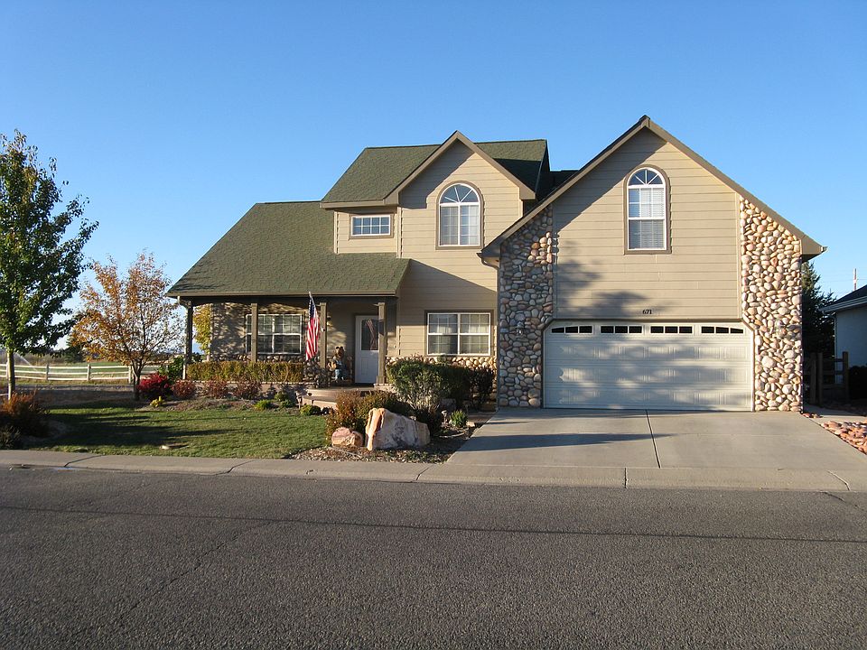 10th fairway Cobble Creek Golf Course.Open spacious floorplan, natural light, closets galore, master suite down stairs, fifth bedroom has 2 closets and doubles as game room. Custom tile floors, New knotty hickory kitchen with corian counters and tile backsplash. Landscape includes maples, blue spruce and redtwig dogwood. Large fenced backyard with 24x24 redwood deck that faces the 10th fairway. Front walk and entrance is stamped concrete surrounded by shrubs. Quiet community with respectful neighbors. All reasonable offers considered- we are motivated. Price includes Cobble Creek Membership.