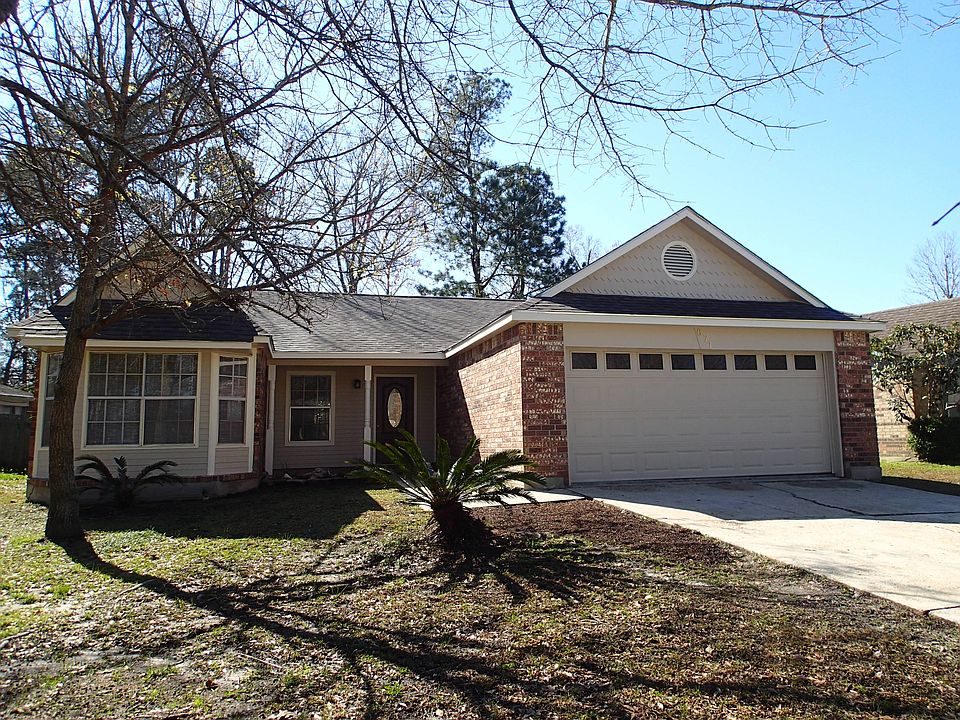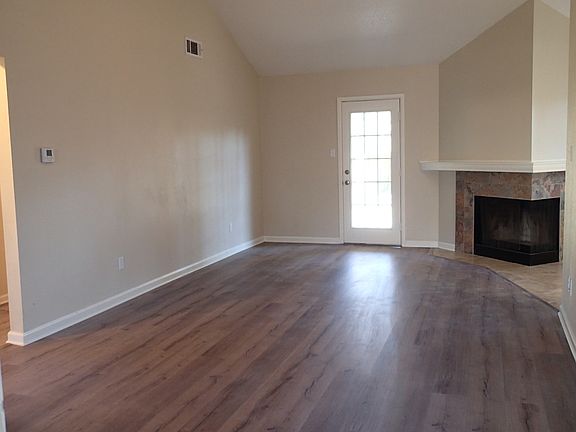 Updated 3 bedroom, 2 bathroom home available for lease in Mandeville. This property features an open living area with laminate flooring in the living room and bedrooms and ceramic tile in the kitchen and dining area. The living room and primary bedroom include vaulted ceilings and share a two sided wood burning fireplace.