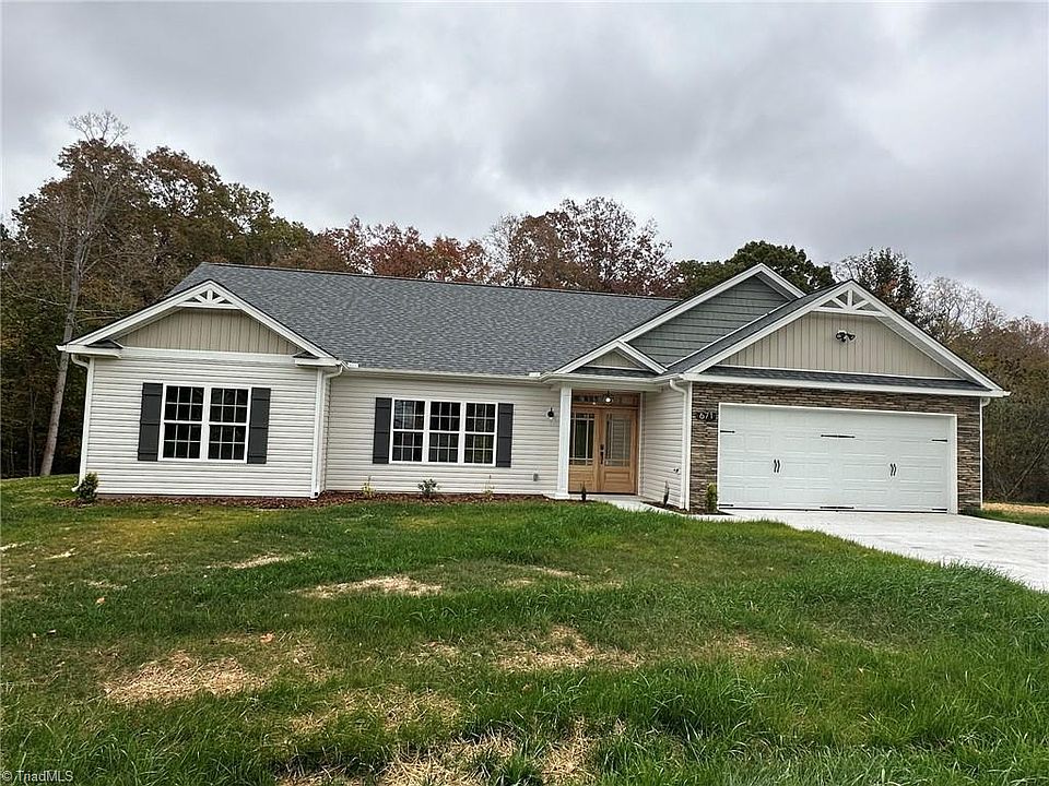 Spectacular new construction in the beautiful Hanes Ridge community. Located in Northern Davidson County, this hard to find one level open floorplan home has the perfect blend of modern comfort and style. As you enter, you'll be greeted by a spacious living area flooded with natural light, creating a warm and inviting atmosphere. The well-appointed kitchen features updated appliances and ample cabinet space. The primary suite has an inviting feel while the primary bath has a custom tiled shower with large closet/dressing room and built in shelving to go along with the linen closet. Midway Elementary and Oak Grove School districts. Enjoy the tranquility of the countryside while still being within easy reach of Lexington, High Point, and Winston-Salem. Spacious .94ac lot. Don't miss the opportunity to make this beautiful 3 bedroom, 2 bath house your new home!