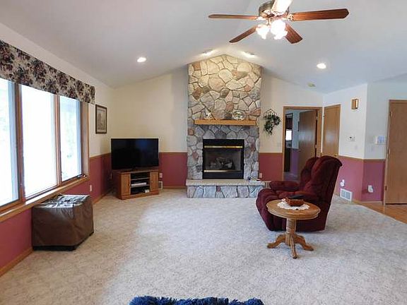 175' of all sports Smallwood Lake waterfront where you will find shallow sandy swimming right from the gently rolling .65 acre yard. Located on a paved road, the concrete drive leads to an attached, finished garage. The foyer has hardwood floors & 2 storage closets. Living room is large & the wall of windows provides excellent views of the lake. The fieldstone fireplace in the LR is so attractive! Kitchen & DR offer hardwood floors, plenty of cupboard & cabinet space along w/ a snack bar. Find a sun room off the kitchen that leads you to a covered balcony w/ a double set of stairs leading to the yard. Master suite has french doors to the deck as well. 2 additional bedrooms, a full bath & laundry room complete the main floor. The finished, walk out lower level doubles your square footage! Enjoy the xl family room with gas fireplace or entertain in the game room large enough for pool table & bar. Lower level also has a full bath, BR & small workshop. Detached 2 car garage is heated.