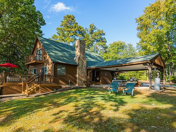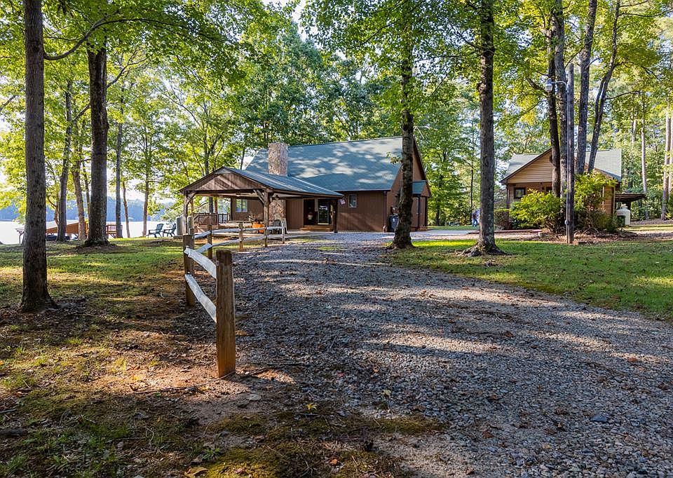 Tis the season for lake living and this adorable non-subdivision waterfront charmer is ready for your vision! This sprawling non-subdivision property is .97 acre and widens where it matters with more than 300 ft of waterfront that slopes deep providing shallow area for young children to play but deep water for dock jumping! The main home features 3 bedrooms with 2 full baths and an unfinished full basement. The "little house" has one designated room, a full bath and kitchenette. The mostly level lot has room to expand or grow, add a pool or just love the room to roam (waiting on septic location confirmation). Furnished! A fun location at the mouth of Lizard Creek but sitting back enough to provide a safe location for kids of all ages to enjoy ! Double boathouse w/ jet ski lift, sundeck, bulkheaded shoreline, well maintained decking, carport and shed! This lot will capture you!