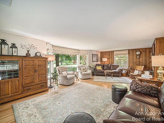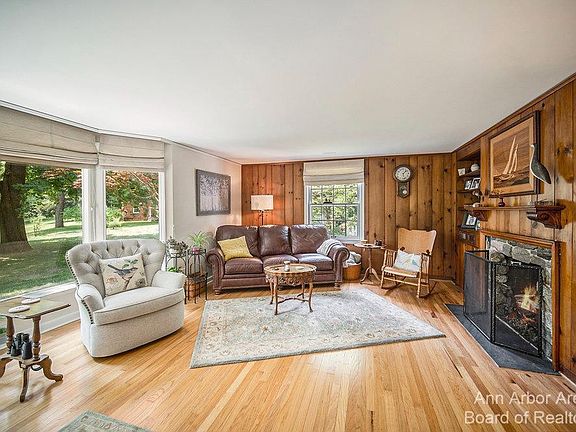 Beauty is in the eye of the beholder, and I am exquisite!! Located on 3.60 acres with frontage on the Saline River, at the end of a private drive, minutes from downtown Milan and unique as unique can BE! Over 2900sqft. of living space including her finished walkout Basement with a charming Wine Cellar you don't want to MISS. 3 to 4 Bedrooms, one on the main floor being used as a Library/Den w/built-in bookcases and pretty wainscoting. 2 full Baths, a formal Dining Room, walk-in Pantry and a traditional Living Room sporting a picture perfect view of my lavish side yard. Mindful upgrades made over the years, found throughout every Room, with lots of restored originality including hardwood floors, doors and trim, a French country Kitchen with farm sink, Viking commercial Range, Quartz coun countertops and large Island. The full main Bath is styling with basketweave marble tiling, 2 Fireplaces with knotty-pine fieldstone surrounds, solar Skylights, Geo Thermal heating, a relaxing 3 Seasons side porch you will not want to leave. All Gardeners and Car Enthusiasts take note, a 18x32 Insulated Pole Barn with Lift and Hoist, a 2 Car Garage with Work shed and Potting room, and a brick Paver Patio that is pure paradise., Rec Room: Finished