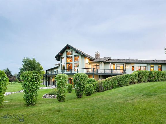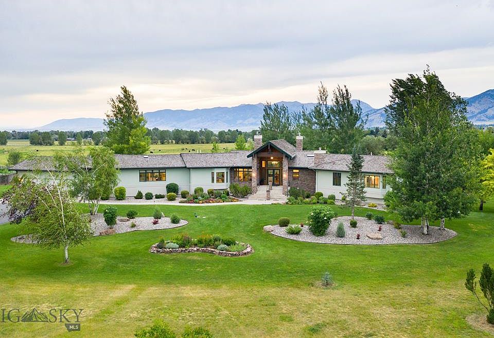 Grand country estate in a 20+ acre park-like setting amid pastures, wheat fields, trees, and bushes, and enclosed with jack leg fence. About 16 acres could be for horses or livestock (currently leased). Ready for family or guests with 5 bedrooms, 4.5 baths in 6500 luxurious, well-planned square feet. Unobstructed 360-degree spectacular views of the Bridgers, Gallatin Range, Spanish Peaks and Tobacco Roots. Four fireplaces, game room w/pool table and refrigerator, cozy library, office area, formal dining room, beautifully-appointed kitchen w/island and pantry, wine cellar, vault, hot tub, expansive decks and eight raised beds in a fenced garden. Vaulted great room focuses on the Bridgers. One bathroom is "disability friendly" and there is a ramp from garage to main floor. The 3-car garage has a workshop w/ample storage space. Fantastic location minutes from airport, schools, Costco, services. This gorgeous property is a real find and ready for new owners to enjoy in all seasons.