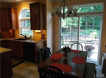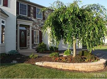 This home is the definition of move in ready. It contains over $94K in upgrades including hardwood floors, crown molding, transom windows, dual zone HVAC, wainscoting, CAT5e wiring throughout and insulated garage. 42" cherry cabinets in kitchen and matching cabinets in 1st floor bath. Kitchen also boasts granite counters, pantry area, under counter lighting, and center island. Family room contains gas fireplace and is wired for surround sound. Beautifully finished daylight basement has a large sitting/recreational area, an office and plenty of storage space. Upstairs has 3 generously sized bedrooms and spacious master suite w/2 walk in closets. Master bath has upgraded fixtures, double vanity sink, shower and jetted tub. Outside is beautifully landscaped featuring private tree lined lot, extended driveway, large paver patio/sidewalk, pond with stream & waterfall and 12x4 storage shed w/electric. Walking distance to stores/restaurants and easy access to LV Hospital, I-78, 22 and 309.
