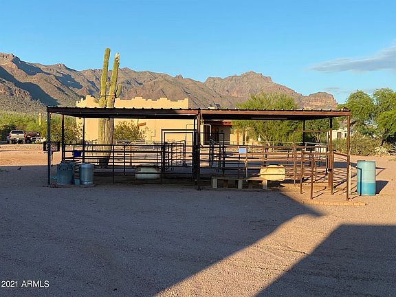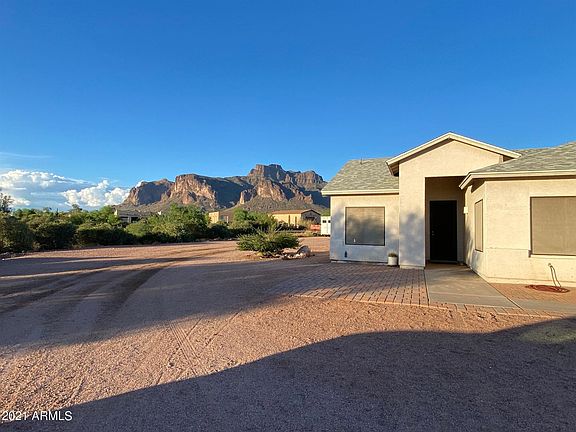 Got horses Don't miss out on this wonderful home situated on an acre and a quarter complete with two horse stalls and a corral. This home has a split floor plan with fresh interior paint and new flooring. You'll never get tired of the majestic views of Superstition mountain from the great room, master bedroom and back patio, or from the hot tub in the back yard. It really is breathtaking. Roof and A/C were recently replaced.
