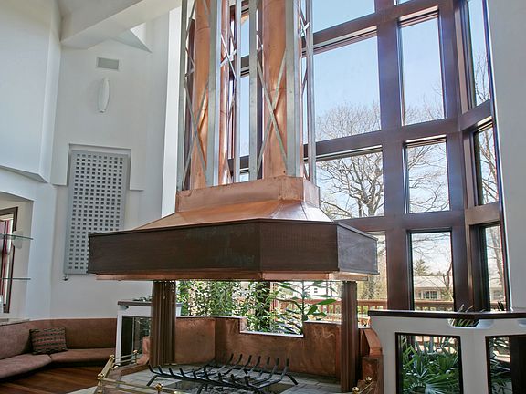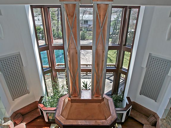 This Contemporary Colonial is one of kind with a pronounced Tuscan and Mediterranean feel, designed and built in 2006 by renown Architect Max Parangi for his family, is so solidly built with state of the art custom materials. The 2 really unique features of this home you will not find anywhere else are the 10 ft X 6 ft suspended copper fireplace (all copper features and chimneys 100% handmade on site by European artisans) and the 20 ft octagonal custom made skylight overlooking the Grand room. Home features a stupendous clay tile roof and exterior Stone and Hard Coat Stucco. Large deck overlooking an extensive green lawn area with in-ground pool and spa. Beautiful woodwork, shelving and moldings throughout and particularly eye catching in study and master bedroom areas. Large marble Entry Foyer, beautiful personalized Study with own fireplace, Formal Living Room with access to deck, Grand Room with the most amazing centerpiece fireplace, Family Room, Gourmet kitchen with gorgeous granite countertops top of the line appliances (Ge Monogram, 5 ft Viking stove and double Bosh Dishwashers) , walk-in pantry, and laundry room. Banquet sized Dining Room with serving area. Second floor features Brazilian Cherry hardwood flooring throughout, extra large landing and sitting area, Rec Room with built in Study area, 4 bedrooms upstairs and 3 full baths. Large Master Suite features own sitting area and fireplace, generous his and her closets and a wonderful Master Bath with high cathedral ceiling. Fully finished Basement features marble flooring throughout, a separate guest room with own en suite full bathroom, Rec room, Game Room, incredible amount of storage space, an oversized 3-car garage, greenhouse, full bath with steam shower and changing area with direct walkout to the outdoor pool area. State of the art Lutron lighting system, entire house equipped with music and speaker system (indoors and outdoors by pool areas), full alarm and smoke detection system, closed circuit cameras all around house and grounds, central vacuum.