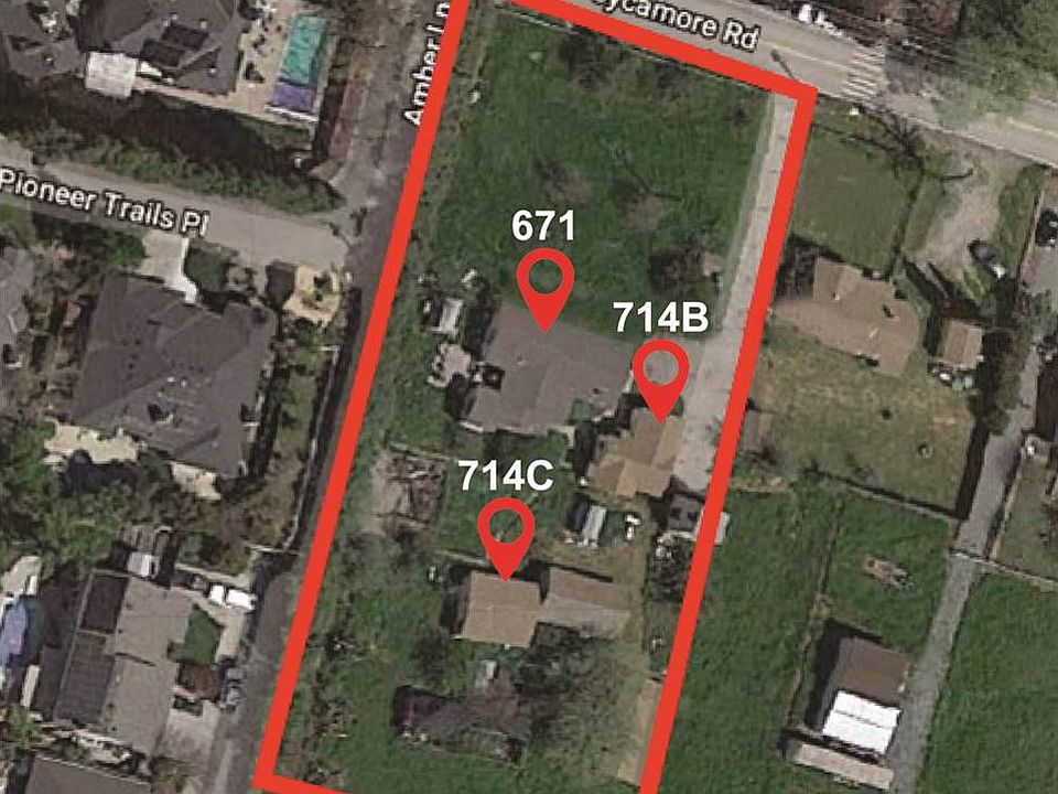 Unlimited Potential on this 1.21 acre level lot with 3 existing older homes. Main front home plus two smaller houses behind. Multiple outbuildings including water tower, garage, storage building and sheds. 3 address, 3 electric meters. County zoning, well and septic with city utilities available at the curb. 671 Sycamore(3br,2ba) rented by prior tenant at $2450/month. 714B Sycamore(1br/1ba) rented by prior tenant at $1495/month. 714C Sycamore(1br/1ba) vacant since 2009.