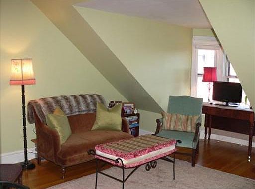 Freshly painted. New Price! Sunny Corner Penthouse Unit with windows on three sides and amazing light and views. Hardwood flooring in hallway & living room with wood burning fireplace. Spiral stairs leading up to a private oversized roofdeck with panoramic South End views. Large carpeted bedroom with washer/dryer in Unit. Good reserves, no work planned or special assessments, and a pet friendly association. Total Units = 5. One(1) Commercial & Four(4) Residental. Three(3) of the Four(4) are Owner Occupied.