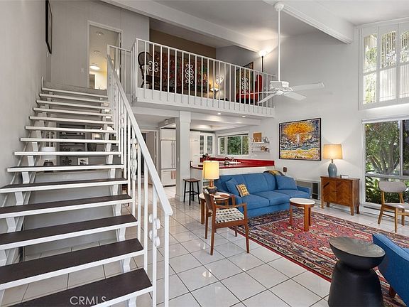 This New Seville in the Nob Hill area has 2 Bedrooms, 2 Baths, a Loft, a Patio, a Balcony, and a Remodeled kitchen. The home has high vaulted ceilings with lots of windows/solar tubes, making this unit extremely light and bright. The versatile loft overlooks the living area and outdoor patio upon pretty trees. The kitchen walls have been removed to create an open floor plan with the dining and living rooms adding to the feeling of spaciousness. With no neighbors above or below and over 1,300 square feet of living space, this model is one of the largest in this gate. The house has tile flooring throughout the living areas and bathrooms with berber carpeting in the bedrooms and loft. The home faces northwest. The upstairs balcony is oriented to the west offering views of greenery and beautiful sunsets. Washer/dryer, dishwasher, counter depth French door refrigerator, microwave, and air conditioning make for easy living. The upstairs bedroom, bath, loft, and downstairs bedroom and bath add to the easy living of this incredible floor plan. Quiet location near Aliso Creek and gate 4. Laguna Woods is a 55+ gated community in a great location. Amenities include golf, a driving range, fitness centers, pickleball, tennis, paddle tennis, horseback riding, duplicate, and social bridge, lawn bowling, bocce ball, 6 swimming pools, hot tubs, ping pong, computer rooms, archery, ballroom dancing and over 2 hundred clubs to join. Close to Laguna Beach, shopping, medical facilities, restaurants, an airport, and more. Country Club Living at its best. Make This Your Next Home.