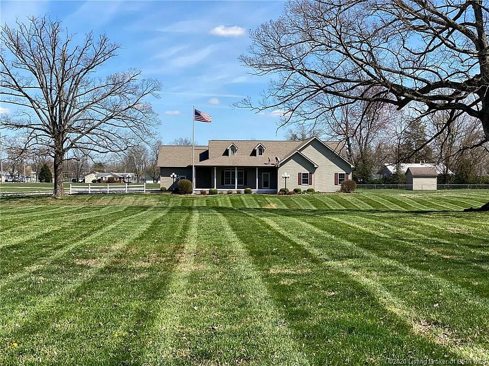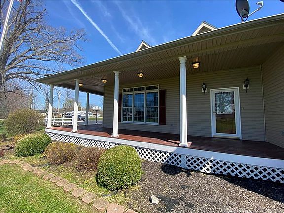 Amazing Custom Built one owner home on almost 3 acres right in city of Scottsburg. 2 covered porches to relax on. Spacious open floor plan with stunning wood floors. Living room has hardwood floors, high ceilings, fireplace and opens to back covered porch. Kitchen has lots of cabinets and counter space, quartz countertops, center island and includes all appliances. Breakfast nook has hardwood floors and lots of floor to ceiling windows for a sunrise breakfast to start your day. Master bedroom is huge with new flooring, walk in closet and brand new bathroom, double sinks and walk in shower. 2 separate bedrooms on front of home and another new remodeled bath. 2nd bath is large and has double sinks, a new vanity and new shower/tub. Fresh paint throughout including ceilings and trim work. New farmhouse deco upgrades. Don't wait on this fantastic home - First Time on the market.