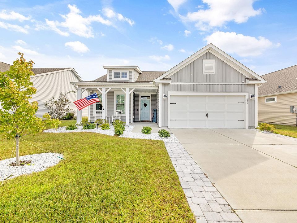Come see this beautiful, meticulously maintained 4 Bedroom 2.5 Bathroom RANCH Style home with private fenced yard! Open floor plan concept with tons of upgrades more than the average style in the desirable community of Sunset Landing! Many home upgrades including -Gorgeous Laminate flooring throughout, no carpet, oversized Quartz Countertop with tons of cabinetry space and CUSTOM pull out cabinet drawers for more storage and easy access, custom shades throughout home, completely replaced all windows with custom double pane windows for durability and opening windows from the top or the bottom, additional duct work added for easier cooling of HVAC System, water filtration system added in for water, and an additional outlet in garage for electric vehicles, ceiling fans added throughout, extended living room space considered a sun room area, could be used for an office, playroom or reading area! Home features upgraded Outdoor Landscaping with river rock, flowers, plants, irrigation and fenced yard. Detached storage shed also conveys with home purchase! Centrally located close to everything, near Hospital, Major Highways, Stores, Shopping, Golfing and more! Approximately +/- 15 mins from the beach. Community pool is included in LOW HOAs!
