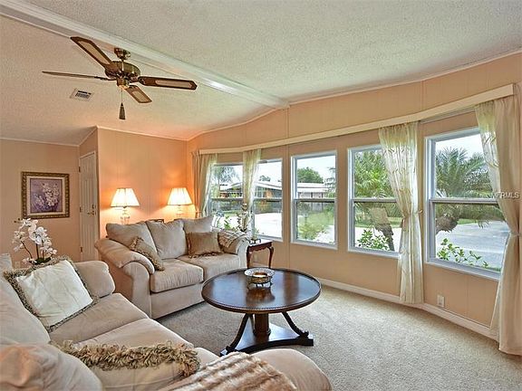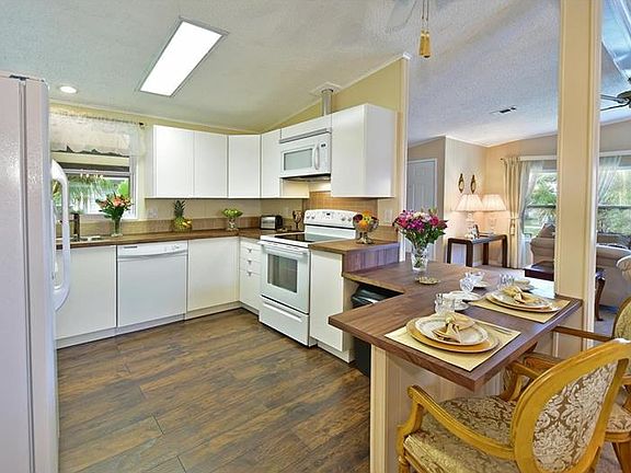Fit for Royalty, we invite you to take a look at this move-in ready home! The spacious living room offers a full bay of windows, a wood burning fireplace and adjacent to the dining room with built in display cabinet. BRAND NEW Kitchen IN 2016 with all new appliances, has loads of cabinet space and a breakfast bar for two. The bedrooms are oversized and each offer ample closet space. The remolded master bath and a walk-in shower. The guest bathroom has a newer vanity, flooring, new toilet and features a shower/tub combo. Interior laundry room also serves as your home office area with built-in desk. Don''t forget the oversized Florida room for an additional 360+/-sqft. Adjacent 8x9 workshop including for storage. Both the roof and A/C replaced 2015, insulated windows, two car carport, irrigation system with timer, gutters, private sunbathing area recently added and a wooded backdrop that few homes in the community can offer. Shadow Brook, a non-age restricted neighborhood has a community pool, shuffleboard, and clubhouse and is close to beaches and shopping. The fees cover unlimited water, cable service, sewer and trash collection for only $420/quarter. Been on the fence about buying a manufactured home? Take a look at this beautiful property and be ready to buy!