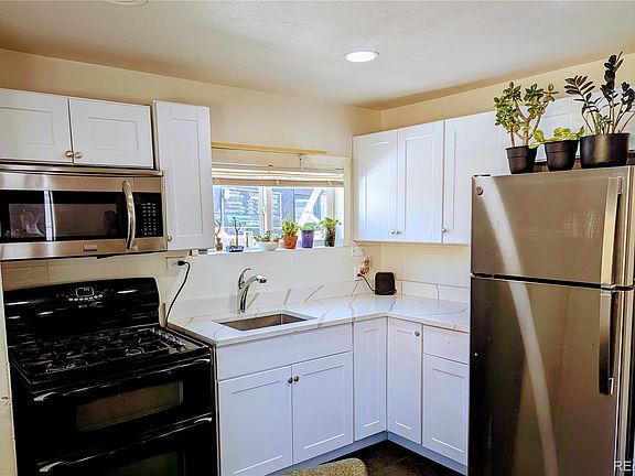 The updated kitchen is a standout feature, boasting crisp white cabinetry, sleek marble-style granite countertops, stainless steel appliances, and a cozy window ledge ideal for your indoor plants or herbs. This functional space blends style and practicality, making it easy to whip up your favorite meals.