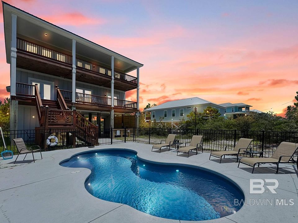 The Absolute Perfect Vacation Retreat, Southern Charm is Now for Sale!! Relax and Entertain in this Beautiful Raised Beach home with Deeded Beach access and located in Surfside Shores Subdivision. This Gold Fortified home is the perfect vacation investment which includes a beautiful inground Pool! This Two-story beauty features Four Bedrooms and 3.5 baths. A huge kitchen with room for a huge crowd features stainless appliances and a huge island. Walk right out to the covered patio with views of your pool and the beach. Living areas in both the lower level and the top main level. Other features include crown molding, This Driftwood Drive Beach House has unique features throughout including driftwood lighting. The first level of this home includes 3 Bedrooms & 2 baths plus a living area. The primary bedroom and bath are on the top level. Lots of storage and plenty of parking including room for your boat and golf cart. Excellent Rentals with rentals reaching over $80K each year. View Rental Projection in Documents. Currently rented with Itrip. Owners own 1/312th Deeded Interest in Community Gulf Front Lot. Buyer to verify all information during due diligence.