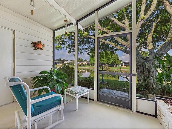 Own your own little piece of paradise. The beautiful home is located on a little lake where you will view beautiful sunsets from the comfort of your patio or enclosed lanai. Shadow Brook is a non age restricted pet friendly park. You own the land which means no lot rent. New shingled roof. All new vinyl plank floor throughout the house. AC unit is 4 year old. This home features Cathedral ceilings. Shadow Brook features a heated pool, shuffle board courts and a clubhouse with a library and pool room. This is a great location. It is located near the Sunshine Skyway Bridge and 75. The beautiful beaches of Anna Maria Island are a short drive away. All room sizes are approximate. Please use as is contract.