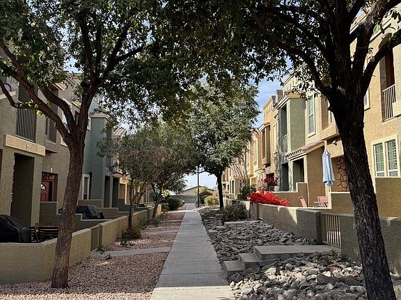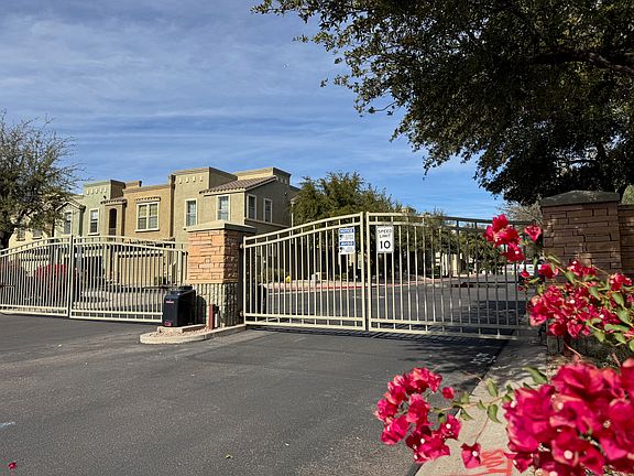 Welcome to this beautifully updated 2-bedroom, 2.5-bath townhome in the gated Strada Townhomes community. With fresh paint, new carpet, and stainless steel appliances, this 1,450+ sq. ft. home is modern, inviting, and move-in ready. The spacious bedrooms each feature ensuite bathrooms, walk-in closets, and private balconies, offering a peaceful retreat. A bright loft space with a skylight provides the perfect spot for a home office, while the upstairs laundry adds convenience. The open layout includes ample storage, a private courtyard ideal for relaxing or entertaining, and an attached two-car garage with extra space. Residents enjoy community amenities such as a pool, hot tub, playground, and fire pit. Located near shopping, dining, and major highways 202 and 60, this townhome offers the perfect balance of comfort, privacy, and accessibility. Schedule a tour today!
