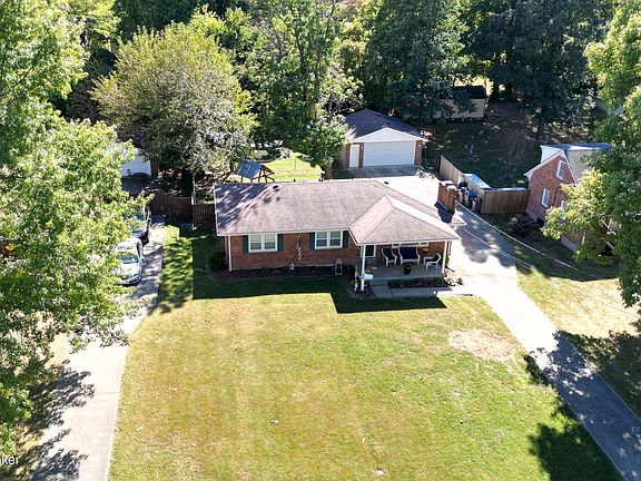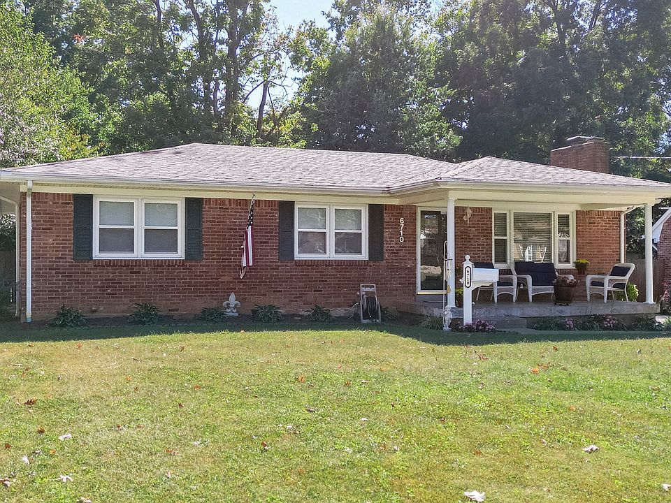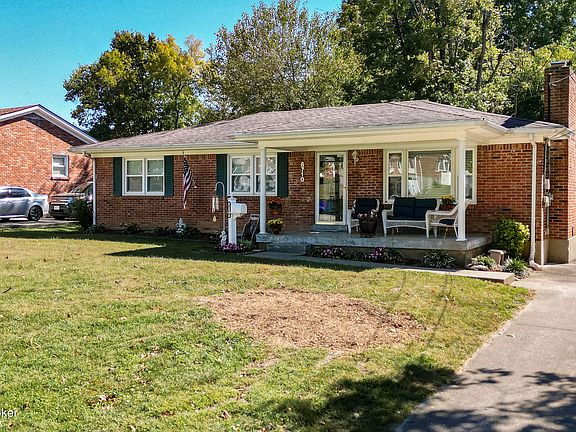 Nicely maintained brick ranch home with above-ground pool & 2.5 car garage on a quiet, dead-end street in centrally located Green Ridge Manor! Hardwood floors beneath all LVP & carpet! A charming covered front porch welcomes you to the home & into the naturally well-lit living room with fireplace & built-in bookcases. The roomy eat-in kitchen features a dining area, walk-in pantry, stainless appliances, hardwood floors & overlooks the living room. The primary bedroom features a private half bath with charming original tile details. Two additional bedrooms & an updated full bath - with double vanity & beadboard accent wall detail - complete the upper level. The finished lower level offers a family room with second fireplace, bar area - great for entertaining, & two bonus rooms - making the perfect private home office or playroom. The laundry/utility room offers two large storage closets, a built-in workbench/crafting area - don't miss the laundry chute from the first floor! Enjoy the outdoors from the patio with stone wall surround - overlooking the backyard with a separate, fully fenced portion containing the above ground pool! A double wide driveway offers plenty of parking.