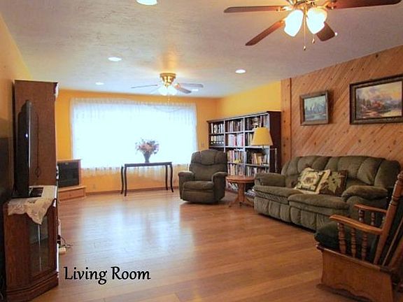 This is the home of your dreams. Single story home with very large bedrooms, roof is 4-5 yrs. old. Newer dual paned windows. Master bath recently remodeled with granite counter tops, tile floor, large tile shower (handicap assessable). Large living and dining rooms. Brick fireplace in dining room covers one wall and has a certified insert. Plenty of cupboards in your very functional kitchen. Laundry room is right off kitchen and has a nice step-in panty. The back yard is fenced with nicely landscaped gardens, including a tranquil sitting area. A newer covered patio complete with counters, a deep sink, 2 ceiling fans. There is plenty of room to entertain on a hot summer day. With just over 1 acre, there is plenty of room for your horses or 4H projects. Room to spread out. 2 Workshops with garage doors and 4 storage sheds give you plenty of room for hobbies or a home business. Covered RV parking. Attached 2 car finished garage. 7.5GPM well per owner.