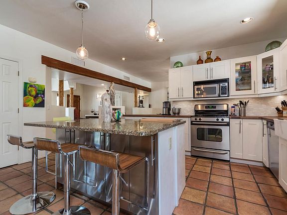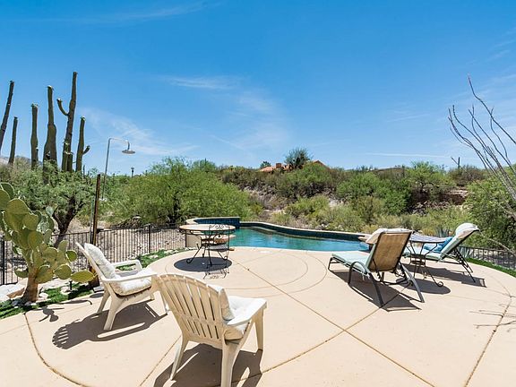 Move-in-ready home nestled in its own nature preserve, yet 5 minutes from amenities at La Encantada & Ina/Oracle. Private setting and fully used acre backing onto a wash allows for mountain, saguaro and lush vegetation views from every window.Enjoy the volley ball/badminton court, bocce court with a gazebo, & nature path circling the property. Lounge in the self cleaning pebble tec pool overlooking a saguaro grove and Catalina Mts. The back porch is built for outdoor living/dining with 800 sq/ft of covered patio, additional open sky decking & kitchen with extensive cabinets/counter space, sink w/disposal & fridge. Inside has new kitchen & open floor plan with huge recreational room that opens onto family room/kitchen and onto living room but can be closed off with two sets of pocket door.