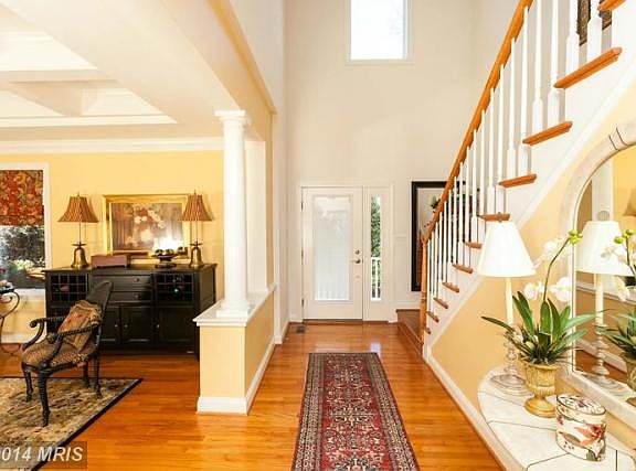 Elegant Villa Style end of group in sought after gated community. 4BR, 3.5ba include main level master suite. 4,126 sq ft home features a two story foyer, living rm w/ coffered ceiling and gourmet kitchen open to family rm w/ gas fpl & private deck. Granite, stainless, gleaming wd flrs, tray ceilings - shows like a model! Huge rec rm on walk out lower lvl. Premier corner lot overlks Sorrento Run.