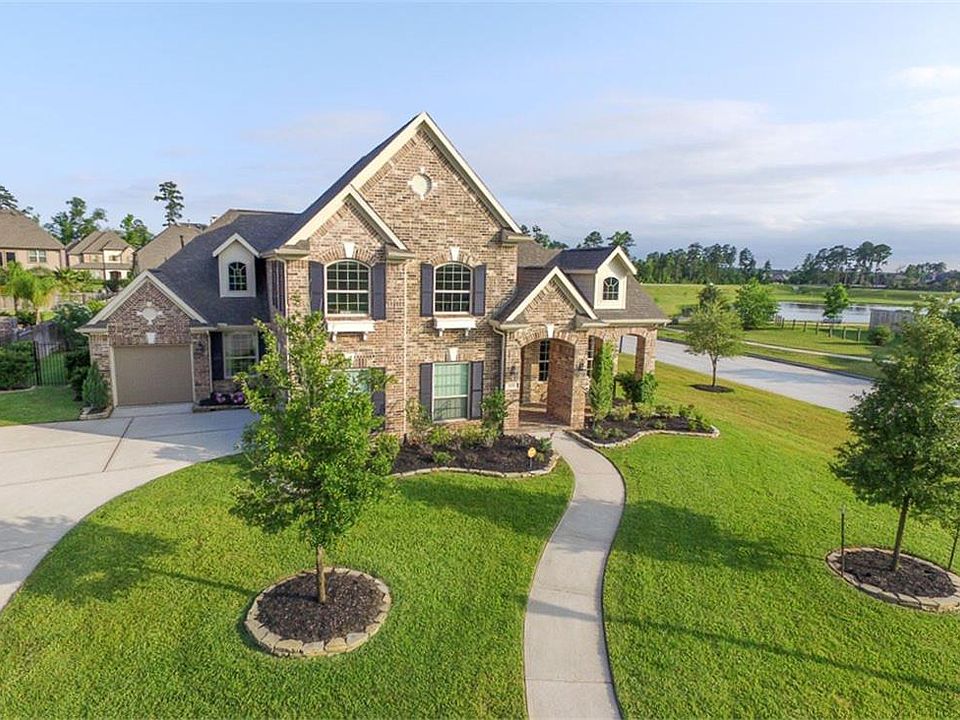3D Tour of Home https://my.matterport.com/show/?m=yRig5MnWYmf Exceptional Village Builders 'Picasso' plan. 1.5 story with pool/spa features 3 or 4 bedrooms, 3.5 baths, 3 car garage, study, formal dining, gameroom, and media. Extensive upgrades! Spacious kitchen with large island, Monogram stainless appliances and maple glazed cabinetry. Rich Hickory wide plank hardwoods, cast stone fireplace, travertine flooring in master bath! Large rear yard with covered patio, spectacular pool/spa with water features and expansive green space! Lake across street!