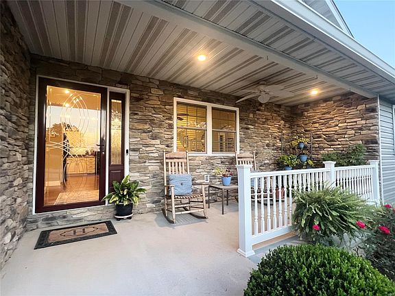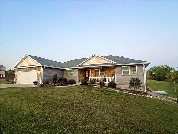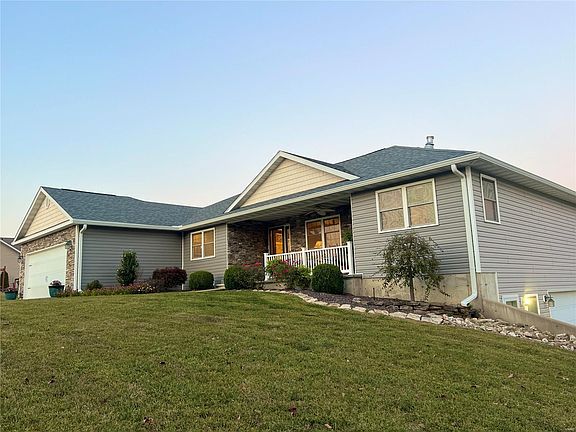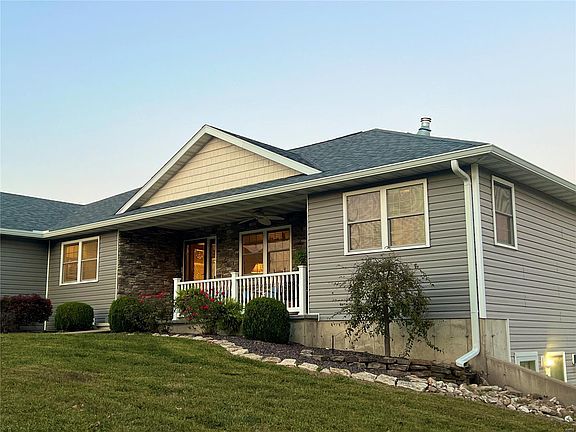 Nestled on 3 acres just outside the city limits of Hannibal, this spacious 3 Bedroom, 3.5 Bath home offers serene country living with modern amenities. Enjoy the convenience of main level living with a cozy gas fireplace in the Living Room, a Primary Suite featuring a large walk-in closet with direct access to the Laundry Room, Full Bath w/ Jacuzzi Tub. Mud Room features 2 built in cubbies, laundry and sink. Attached 2-car garage provides easy access to the home, while the lower level boasts a second 2-car tuck-under garage, a full walkout basement with a covered patio, safe room & 1.5 bathrooms. Perfect for a home-based business, the lower-level office has separate exterior access and parking. The yard is beautifully manicured & the 24x36 outbuilding has a concrete floor, overhead door, and electric service providing additional storage & workspace. Relax on the covered deck off the breakfast nook, overlooking the lake with floating dock, perfect for fishing in your stocked waters.