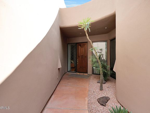 and the Scottsdale Waterfront. This 3 Bedroom 3.5 Bath home with beautifully finished Viga wood ceilings in the Living Room and Master Bedroom and curved plaster walls, natural light from skylights throughout, private court yard. 2 car climate controlled garage.