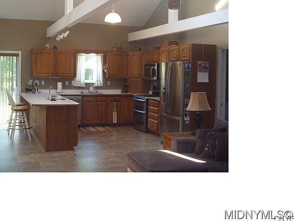Stunning Contemporary with Ranch flair. Vaulted ceilings with skylights, open floor plan, steel frame construction, new roof, new carpet, central air, new driveway, new gutters, 1.75 Acres.