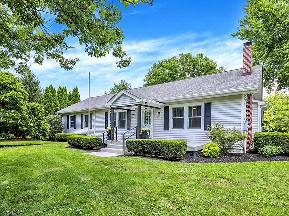 HUGE $50,000 PRICE REDUCTION! Nestled on over an acre of beautiful land, this charming 3-bedroom, 2-bathroom one level home combines mid-century charm with modern updates from head to toe! Welcoming front porch leads you to the living room with fireplace, built-in bookshelves and lovely flooring. The formal dining room featuring built-in cabinets and custom wainscoting offers a harmonious blend of functionality and timeless elegance. Open eat-in kitchen features new cabinets, appliances, backsplash, and countertops with convenient pass through window and breakfast bar. Spacious family room overlooks the backyard. Ample sized bedrooms feature nice sized closets with automatic lights. Both bathrooms have been beautifully remodeled. Full basement with storage has laundry area with utility sink. Mudroom with custom cubbies leads to the backyard with covered patio and two-car garage. Outside, enjoy the privacy and tranquility of over an acre of land, offering endless possibilities for outdoor fun, garden, or future expansions. Amazing Traders Pointe location that's just minutes to Eagle Creek Reservoir and more. Welcome to your personal oasis!