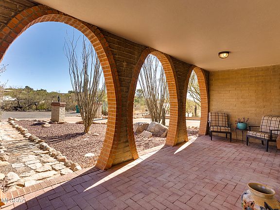 Sparkling poolCovered patioTwo car garageTimeless charmBreathtaking catalina mountain viewsWarm brick accentsPanoramic sunset vistas