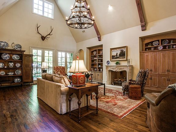 A soaring double-height entry hall with a sweeping staircase, richly detailed millwork, four wood burning fireplaces, downstairs master and a vast chef's kitchen are among the highlights of this extraordinary home that has been meticulously maintained by the current (original) owners. Professional grade kitchen appliances include a 6-burner Wolf gas range with grill and pot filler, two dishwashers, warming oven, double Sub-Zero refrigerator-freezer. Granite counters and a walk-in pantry. The Great Room has a beamed, vaulted ceiling and is part of the open design that allows the kitchen-living area ready access to a sheltered, grill station that encourages outdoor cooking and casual entertaining. The warmly paneled downstairs library centers on a large fireplace. Upstairs is a large game room, three roomy bedrooms, each with its own bath, a media room and a large climate-controlled storage area with wall-to-wall shelving plus a cedar closet. Landscaping by Harold Leidner.