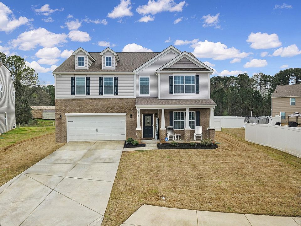 The Columbia Floorplan boasts a modern and spacious open-concept design that maximizes site lines and enhances the flow of the living spaces. The kitchen is a chef's dream with sleek white shaker cabinets, granite countertops, and a stylish tile backsplash that adds a pop of color and texture. Upstairs, the floorplan offers a versatile loft area, perfect for a playroom or office space. The large owner's suite is a serene oasis with a luxurious on-suite bath that features all the amenities you need to relax and unwind. Located in the sought-after Sutton Farms community, this home offers the perfect blend of convenience and comfort.