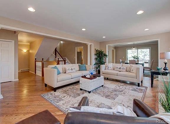 Updated & Upgraded Main Floor Master Plan, Beautiful Setting with tons of Trees & Shrubs, Backs large Greenbelt, Spacious & Open floor plan with large great room with wood burning fireplace, main floor study, main floor laundry, Gorgeous Main Floor Master with all new 5 piece bath, great tile floors, custom door less walk in shower, super walk in closet with organizers built in, powder room redone with pedestal sink, Huge walk out basement with extra bedroom & bath, another laundry area, kitchenette makes this an ideal "mother in law" suite, upstairs 3 more large bedrooms and full bath with extra sink & vanity, private neighborhood pool, tons of neighborhood activities, walk to Englewood Dam/ Willow Springs Nature Preserve & Rec Area that connects to miles and miles of trails for biking or hiking. Excellent Cherry Creek Schools system!