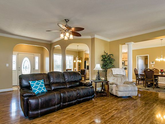 6 Bedrooms 3 Full Baths over 3800 sq ft on 7 acres. Open Floor Plan Large Living Room, Eat in Kitchen w/SS Appliances, Large Breakfast Nook w/Builtins, Formal Dining Room, 1st Floor Master Suite w/His/Her Closets, His/Her Vanities, Garden Tub & Shower, 2nd & 3rd Bedrooms are on the 1st Floor, Upstairs Features Bedrooms 4-6, Large Bonus Room. This home features a FABULOUS Laundry Room w/Sink/Built in Cabinets. Beautiful Covered Back Porch.