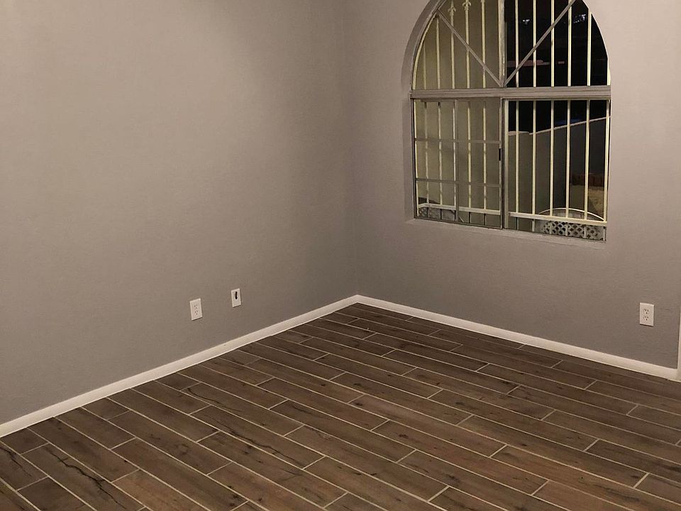 Beautifully remodeled 2 bedroom 1 bath townhouse, corner unit with a fenced in front yard with a front patio, 1 of the only units with this luxury. Painted inside and out, 6 inch by 3 ft porcelain tile in main living areas, marble kitchen counter tops, new stove, dishwasher & fan hood, new bath tub, tub surround, vanity, mirror and bath light. Acoustic scrapped off ceilings and the unit has a skip toweled textured throughout. Ceiling fans throughout, 2 in the main living area, Master bedroom has a walk in closet. New 3 ton Goodman HP Ac unit with a 10 yr warranty , New Pex plumbing throughout, New electrical outlets installed throughout. Drywall installed in the laundry room. This home is a remodeled and ready for your Buyer(s).