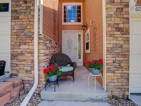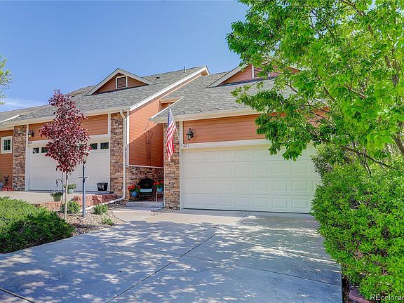 Welcome home! Spacious open floor plan with views of the Rocky Mountains. Vaulted ceiling on main floor living with large windows and balcony off living room to enjoy the full mountain view. Beautiful kitchen features upgraded cabinetes with crown molding, granite counter tops, brand new stainless steel appliances, dining area and open to living room with gleaming hardwood floors. Master bedroom is on the main level! This primary bedroom continues with vaulted ceiling and hardwood floors with an adjoining newly remodeled bathroom with brand new jetted tub, as well as a walk-in closet. Remodeled to single vanity, however, plumbing was left in place to return it to a double vanity if desired. There is a spacious loft which can be an office, reading room or play area or all of the above. Downstairs you will find two other bedrooms with 9 foot ceilings, a full bathroom, a large family room with a walk out patio; plenty of room for a table of 4 and grill to enjoy the Colorado evenings.