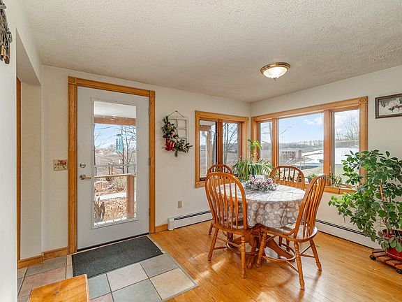 COUNTRY LIVING on peaceful 10.3 acres with amazing views, beautiful hardwoods, deer blind, chicken coop, fire pit, garden area, above ground Pool and outdoor Wood Boiler. This well maintained home has full walkout lower level with 2 bedrooms, bath, family room and storage. Main level features large updated kitchen with new appliances, walk-in pantry, primary bedroom suite, 2nd bedroom and half bath. Large pole barn 28' x 90' has cement floors, electricity, heat and workshop area. Enjoy watching the abundant wildlife that visits the area, take a walk in the woods and enjoy nature. Make your appointment soon, this one won't last! Improvements - EXTERIOR - New concrete sidewalks and cement garage floor, replaced 3 exterior doors & egress window. Exterior wood boiler heats pole barn as well as home. Carport for RV parking with gravel pad. Recently installed above ground pool with deck and blue shed.