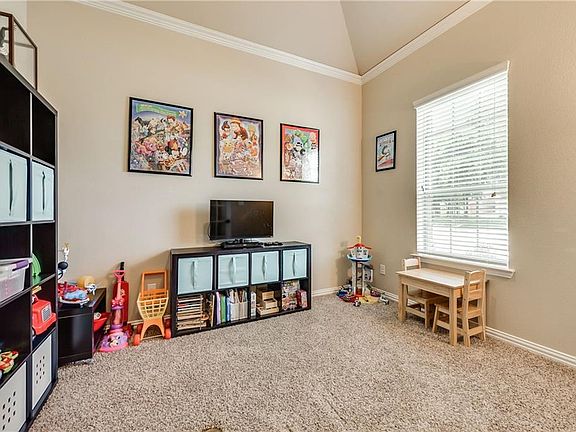 Stunning home in Denton's Preserve at Pecan Creek community! Single story with 4 spacious bedrooms, each with walk-in closets! Step into an inviting foyer, with study adorned with French doors & open formal dining beyond! A gourmet kitchen with ss appliances & breakfast bar awaits the chef with gas cooktop, plenty of storage & counter space! Built in surround sound speakers in the living room & stone fireplace. The master suite boasts a large shower, separate vanities & garden tub! The backyard is perfect for entertaining with a towering stone fireplace on the corner of the covered porch overlooking a grassy backyard with gorgeous view of the neighboring treed lot behind the property's edge! W+D & Fridge stay!