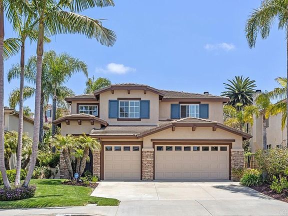 Welcome to this meticulously maintained and updated executive home in the highly desirable community of Mariners Point. Featuring 5 bedrooms/3 baths (1 bedroom and full bathroom downstairs), this showpiece has a flexible and spacious floor plan. Downstairs features a soaring ceilings in the formal living, a formal dining room, gourmet kitchen with stainless steel appliances, quartz countertops with breakfast bar, custom tile backsplash, and farm style sink, adjoining family room. Upstairs has an incredible primary suite with twin walk-in closets and luxurious bath, three additional bedrooms (one with an ocean view!) and secondary bathroom. Relax in your beautifully landscaped backyard, with plenty of grass and patio space. Other desirable features include extra tall base boards, custom paint and lighting, beautiful stone tile flooring, and more. Very close to award-winning Pacific Rim Elementary, tons of shopping and restaurant, and incredible Carlsbad beaches, this home has it all. Welcome home!