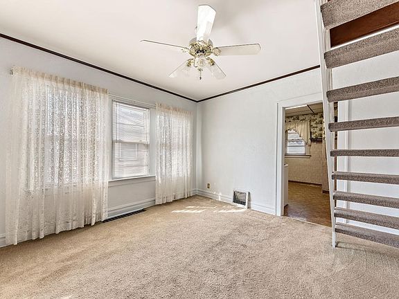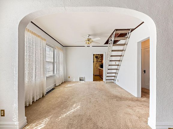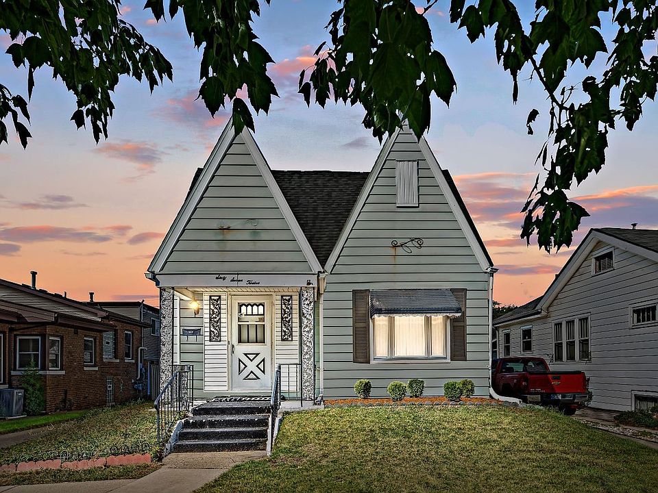 Picture perfect cape cod offering 3 bedrooms and 1 bath. Great curb appeal and a covered front porch invite you into this well kept home. Dining room/living room greet you and welcome you inside. Nice eat in kitchen includes all appliances. Home has 2 main floor bedrooms and a 3rd bedroom upstairs. Basement offers future expansion or use for storage. Home has an oversized 2.5 car garage. Roof is only 2 years old! All of this on a nicely landscaped lot. Must see!